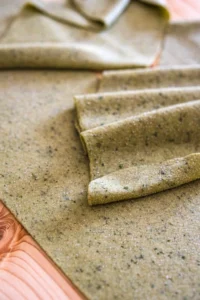 Aby przygotować ciasto na ravioli, wymieszaj obie mąki i na stolnicy uformuj kopczyk z zagłębieniem pośrodku. Do środka wbij jajko i dodaj zmiksowany szpinak. Stopniowo zagarniaj mąkę do środka kopczyka, mieszając palcami, a następnie wyrabiaj ciasto rękami, aż stanie się jednolite, elastyczne i równomiernie zielone. Uformuj z gotowego ciasta kulę, przykryj folią spożywczą i odstaw na 30 minut.